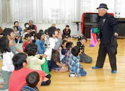 歓迎はこちらも2年生。『おむすびころりん』の劇を元気よく演じた。