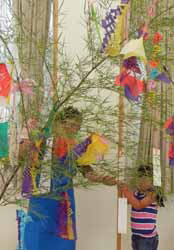 そして、時間の最後までまた七夕飾り。2本の笹に飾り付けて公民館に飾った。