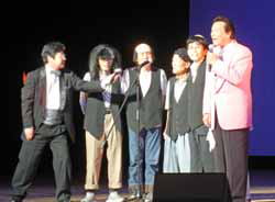 後半はバラエティショー。津軽三味線で始まり、華やかな踊り、太神楽、最後は物まね歌手の皆さんの歌謡ショーだったが、美空ひばりを真似た方が角度によってよく似ていた。また、前川清ならぬ後川清の「クールファイブの歌をやるにはバックコーラスが必要」と客席からお客さんをリクルートしての『長崎は今日も雨だった』は、人選が初めから決まっているのか楽しいおじいさん達(最高齢91歳)で笑わせてもらった。