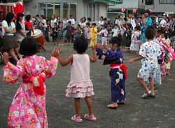 バザーまで居られなかったのが残念だが、私は次に保育園へ廻る。こちらはテリトリーの委員さんと主任児童委員の相棒さんと一緒。こちらも今年は年長さんのみなと群舞でオープニング。チンドン屋さんもやって来た。そして、皆一緒に焼津おどり・東京音頭・ドラエモン音頭の3本立て。踊った後は夜店とお夕飯タイム。金魚すくいが1番人気で頭しか写真に写らないほど。お遊戯室で小さな劇場。最後にもう1度皆で踊ってお終い。お父さん・お母さん・おじいちゃんにおばあちゃん、兄弟に卒園した小学生達、近所の人も加わって賑やかだった。昨日までの雨模様のお天気が今日は高曇り、ほどほどのお天気になってくれて良かった。