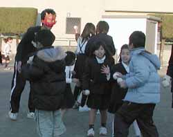 節分の由来についての紙芝居と絵本の読み聞かせ(読み聞かせははだかっこの方。はだかっこの会長さんも民児協の方で結局ここでまた一緒になった)の後、グランドで大学生や中学生のお兄さん達のオニに玉入れの玉を投げつけてオニ退治。最後は2Fからまかれた豆(お菓子もあった?)を拾って今日の行事はお終い。豆まきをした民児協の地区会長は「ちょうど年男なんですよ」と言っておられた。こども創造の広場に遊びに来た子供達は帰る時間、学童保育の子供達はもうしばらくここで過ごす事になる。