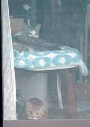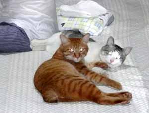 蒼、君が茶々と一緒に焼津にやって来たのは04年の暮れも押し詰まった頃だった。クーが死んでしまった後、あちらこちらの伝を辿って新しいネコを探している時に東京の友達から声が掛かった。「茶トラなんだけど」という話だったのだが、母さんと3匹兄弟・兄ちゃん付きの君達家族に餌をあげていた人のお姉さんが君達の将来を心配して新しい家を探していた。それが彼女の友達だった。兄ちゃんはその方の家へ、もう1匹の兄弟は別にもらわれて、君達2匹、一緒の方が心強いだろうという事に相談が決まった。