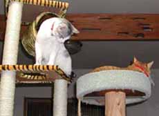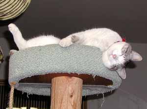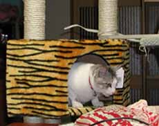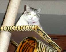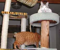 家にはマーミからもらった立派なネコタワーがあるのだが、蒼はそれが大好きで夜はたいていその天辺に陣取っていた。蒼が乗るから茶々も乗ってみたいようで時々乗っていたけど、蒼が居なくなった最近は茶々が乗っているのもあまり見ないよ。だけどそこが取り合いになるのでTANUKIがもう1つネコタワーを買ってくれた。これも真ん中の小屋によく入っているのはみゆだけど最初に探検をしたのは君だった。君にはちょっと収まりが悪かったらしく、相変わらず君は古いネコタワーの上がお気に入りだった。