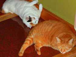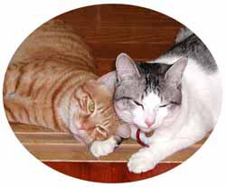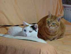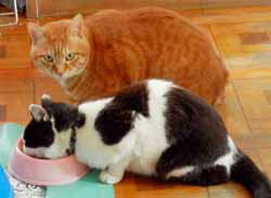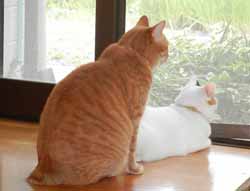 とら丸とはすぐに仲良しになりました。茶々も初めからやさしかったよ。外に他所の猫が来ると「大丈夫だから」って守ってくれたし。でも、DORAおばさんに言わせると私がうるさくするので、茶々がDORAおばさんの傍に来て安心するようになったって。