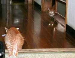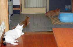 家には隣のアパートの猫達(別々の家で飼われていたのだが)がしょっちゅう庭に遊びに来ていたようだ。さらに新しくした網戸がやわで、はなが破って何度も脱走をしていたらしい。茶々はこの頃には外出に飽きていたのか?