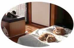 11月末でDORAおばさんの主任児童委員はお役終了。落ち着いたところで、12年度末で退職したTANUKIおじさんの退職金を使って家のリフォーム企画。色々な職人さんが入るし、家の中のあっちこちが工事に伴って通行止めになって大変だったんだよ。台所の工事もしたからしばらくは玄関が仮設台所。3月末までの長丁場の工事となったんだよ。茶々はおばあちゃんと一緒。私達はDORAおばさん達と一緒の部屋で過ごしてたの。