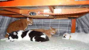 この頃あった炬燵は大きくて皆で入ってもゆとりで、茶々もTANUKIおじさんがいなければ入りに来ていました。みゆはだいぶ弱って、こないだうちの茶々のように特別扱いされつつありました。夏を無事に越したみゆは2012年10月5日に死んでしまいました。