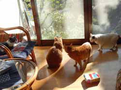 子猫達も大きくなって、秋には大捕り物の末の去勢手術。それ以来、蒼にも茶々にもより警戒されてしまった。しかしその当時は猫は外遊びが普通。あまり心配もせずに外に出していた。蒼は外に出てもちゃんと帰って来るが、茶々は早い時期から家出常習犯。それでも近くに居るらしく、猫達が呼びに行くと顔を見せた。