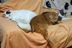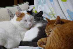 その8月末、TANUKIがダウン。初めは熱中症かと思ったのだが、救急車に来てもらう大騒動、一時はかなり具合が悪くて心配したが、10/29に無事に退院。その間に楽しみにしていた藤守の娘の結婚式は終わってしまった。9月後半は私も喘息がひどくなって、内科へ行く時間もなく猫達が看病してくれた。