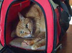 8月、とら丸の予防注射に行って、茶々の真っ黒になった耳の中を診てもらう段取り。翌日連れて行った。簡単に捕まるようになったしケージにも素直に入るのだが、思いっきりビビッて吐くは漏らすはで大騒動。耳はきれいに耳掃除をしてもらって本猫もさっぱりとしたようだった。