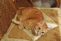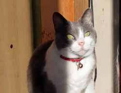 ぼくがここに来たのは獣医さんの紹介。ぼくは外で行き倒れて保護されたんだって。元の家は覚えていないなぁ…。ぼくがDORAおばさん家を紹介してもらったのは、多分その前の年にクロンが亡くなって猫が少なくなっているのを獣医さんが知っていたから。DORAおばさんもすぐに引き取る事に決めてくれたしね。だけど治療があったから、この家に来たのは2009年の6/26。みゆには早速指導されたけど、すぐに皆でご飯を食べられるようになったよ。