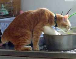 茶々がしょっちゅう吐くので、さすがに金のだしカップなど柔らかいものを加えるようになった。