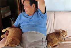 茶々は人間とは距離を置いていたけど、猫には優しいんだよ。あまりうるさい事は言わないで、くっつきあって気持ちの良い関係を作っていたんだ。ずいぶん痩せて弱ってきていたけど、それでも茶々は茶々、お茶目でマイペースなんだよ。テレビ好きで、動物や特に鳥が出てくると大喜びでテレビの前に居たりね。