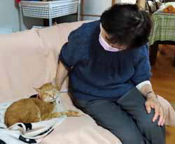 そして、コロナ騒ぎで人間は身動き取れなくて、色々な行事が中止になったし、TOPPOさんも来られなくなっていたけどね。でも、11月にOさんとMさんがまた茶々のお見舞いに来てくれたんだよ。その時は茶々も皆と一緒にいて、「どうしたの?」とかえってビックリされたけどね。Mさんはゆっくり茶々を撫でてくれたよ。