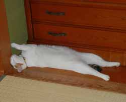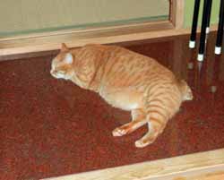 そして7月にもノミの大発生で大騒ぎ。例年なら暑くなる前にノミ取り薬をかけるのだが、この年はクロンが弱っていたのでさんざん迷って、結局ノミ取り薬を使った。それならもっと早くに手を打つんだったと後から反省。この頃に茶々も体調が悪かったらしく押し入れに雲隠れ。夏休みの終わる頃にやっと復活して出てきた。この頃のみゆは手のかかる2匹のお陰でスポイル気味。時々吐いたり具合が悪い事はあっても元気に家の内外を走り回っていた。