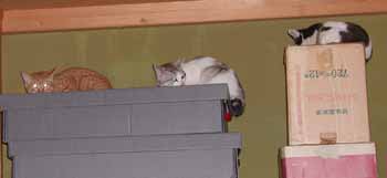 これだけネコが居れば代わる代わるにケガや病気で獣医さんにもかかるが、逆にこれだけ大勢だとそう心配もされずに気楽な日々が続いていた。まだ外出もOK。しかし、予防注射の予定日にいくら探しても居ないなどという事もありがち。集団で居れば伝染病は何よりも怖いので、近日中に予防注射の予定は変わらないのだが…。