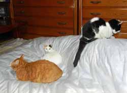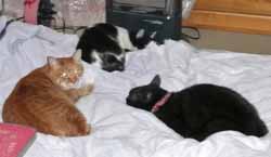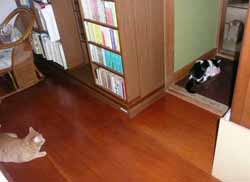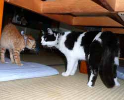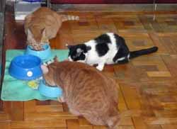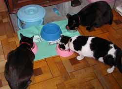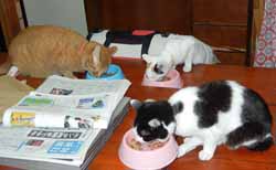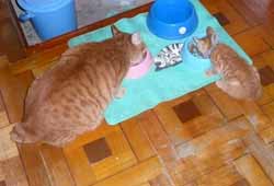 しかし、食べるものには執着が強く自分のものだけでは済まずに次々と他の子の食器に進出。特にやせてしまっているみゆが落ち着けないのは困るので、この頃からみゆはその時居る場所、茶々は茶の間、とら丸とルナは台所の今までの食事場所と分けた。そうなるとトラ丸が割りを食ってルナに取られてしまう。面白い事に茶々はちゃんと自分の分を守って悠々と食べていた。