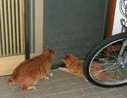 6月にはまたみゆの調子が悪くなり上手く食べられなくなったりおしっこの出が悪くなったりで獣医さんのお世話になった。それでもちょっと元気になると外出をするみゆ。しかし、この頃には自分が頑張らなくてはと思うようになったのか、よそ猫が庭に入って来ると茶々が率先して応対をするようになった。いささか腰が逃げ気味ではあるが、窓から呻り声を上げるようになってきた。