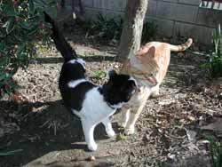 2007年は穏やかに開けた。4匹ネコズは元気に外遊び、茶々がひきつれてきた悠々も家に出入りをしていたらしい。戸締りをすると「出せ」とうるさいので家の子にはしていなかったが、準家の子になっていた。ヒョロリとした子猫もこの頃にはドッシリとした猫になった。茶々は相変わらず外へ出るとなかなか家に入らずにキャンプ生活、でもよくしたもので心配をしていると蒼やクロンがどこからともなく連れて来て顔は見せてくれた。玄関で餌を食べて「入れ」と戸を閉めようとすると大急ぎで逃げ出したが…。みゆはそれまで末っ子だったせいかあまり世話を焼かない。しかし、よそ猫が入って来ると勇んでテリトリーを守りに迎え撃つのはみゆだった。