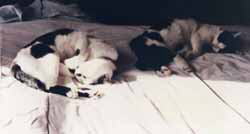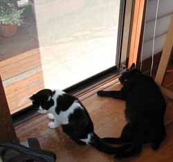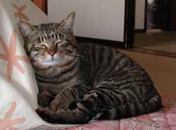 冬には子ネコ達の去勢手術も終了。クロンとみゆがケンカをしながらも私の布団にやってきて寝るようになったのもこの冬からだったろうか。ただし、どちらかを布団の中に入れるとどちらかが出て行く。たいてい頭の方に1匹、足元に1匹だったような気がする。夜中には蒼と茶々の運動会、茶々は今でも「にゃぁ〜」と鳴きながら走り回る事があるが、この頃はもう少し切羽詰まったような鳴き方をしていたように思う。そして、この頃から茶々は首輪が嫌い、取れるとなかなか付ける事が出来なかった。しかも外に遊びに行くと帰って来ないで茶々には本当にヒヤヒヤさせられた。それでも夏には家に居れば4匹で玄関の網戸越しの風に吹かれてのんびりしていた。