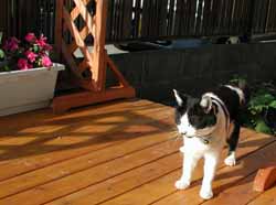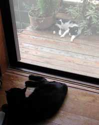 夏には4匹ネコズは外遊びで時には帰って来ない事も、特に茶々は1度出ると数日庭に居座っていたが、この頃、悠々が茶々用に置いてある餌を狙ってやって来るようになった。当時はまだ細っこい子猫だった。