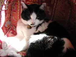 そして、10月23日、ルナが家にやって来た。この子はふれあい広場に来ていた犬猫の里親探しの会で気にいってもらった子。予防注射はまだとはいえ一応健康診断をして連れて来てくれたはずなのだが、すぐに仲良くなったトラ丸に喉風邪をうつし、耳ダニをうつし、私はルナに指の爪のきわを引っ掻かれて腫れあがって医者通い、茶々が来たばかりの時に噛まれて腫れあがった時以来の大騒ぎになった。