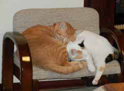 さて、2004年の暮も押し詰まった12月27日、少し前からもらう段取りをしていた子猫2匹が到着。江戸っ子で尻尾が短いサバトラブチと茶トラの兄弟。蒼&茶々がやってきた顛末については『蒼へ』に書いた。