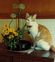 お嫁入り野菊のブーケと猫抱いて DORA昔の嫁入り道具に犬張子があったというのは聞いた事がある。安産のお守りだったらしい。