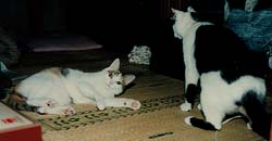 この子の名前はトトロと付けた。すでに2ヶ月くらい経った子猫で、家の前で大声で鳴いている所を発見された。ちょうどミミに似た毛並みで白に薄いベージュの点がとび、シッポが長かった。
