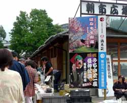 翌朝は6時起床。朝食までには時間があるので部屋の人達と朝市へ。平日なので程々の賑わいだったが漬物・野菜・ジャム・牛乳・お菓子・温泉饅頭・花の苗など色々な店が出ている。店の人の平均年齢も他所に比べて若く活気がある。「家のおばあさんが作っているんだよ」などと漬物や煮物など色々と試食させてくれる。