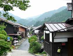 バスで20分もすれば妻籠宿。妻籠宿は江戸時代に中山道と伊那道の交差する交通の要衝として栄えたが、明治時代鉄道からはずれた位置になったため寂れてしまったがそれが幸いして町並みが保存された。ぱらつく雨の中を三々五々歩く。鯉岩の辺りまでは団体行動を取ったがその辺りからばらけ、我々は脇本陣から資料館・本陣を見学。