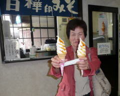 その他に地酒やお菓子などの土産物もあり、かなり広い店内を回っていると味噌ソフト発見。もう10年は前になるだろうか。その頃のネット仲間の信州の方が、信州には味噌ソフトがあって美味しいんだという話を聞かせてもらった。その頃から1度食べたいとは思っていたのだが、そして信州方面にも何度か来ているのだがめぐり合う事がなかった。