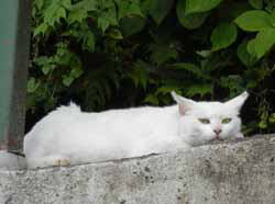 楽しんでいる内に唐笠港に着いた。港では白いアヒルと猫がお待ちかね。アヒル達はお客さんの煎餅の残りをもらってご機嫌だった。ネコは煎餅ではうれしくないのか消えてしまったが上にその猫の子猫らしいのが2匹いた。
