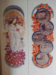 そしてこの道の正面には元小学校だったという建物が、絵画館としてあり、百人一首と源氏物語絵巻の企画展をやっていた。一人の作者が絵文字も書かれたそうだが、読みやすい字なのだろうと思うのだがあまり読めないのが残念。貝合わせになっているものもあり、その貝に描かれた絵もその方が描いたものだそうだ。しかし、この建物とても暑い!いわゆる洋館の作りで壁が厚く窓が小さい。風が通らないので熱気がこもってしまうようだ。