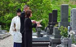 墓前でもまた祝詞があげられて玉串を奉げ無事に納骨も終了。