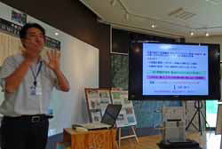 ここを訪れる人達は各地の自治会の役員さんや自主防関係者、民児委員さんなどが多いそうだ。我々は軽く流してお話を聞いただけだが、じっくりとした研修にも応じてくれるそうだ。それでも気が付けば1時間。ここからバスで10分ほどの小千谷市産業界館へ移動。災害支援ネット;ちゅうえつの桑野敏久さんのお話を伺った。