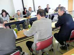 双方の会長挨拶の後、それぞれの副会長から市の概要説明がある。木更津市は『日本武尊が上総へ渡ろうとしたとき、にわかに海が荒れ、船が難破しそうになりました。尊の命を救おうと、妃の弟橘媛が自ら海中に身を投じ海神を慰めたので、怒濤はたちまちにしておさまりました。上陸した尊は太田山から海を見下ろし媛をしのび、何日もこの地を去らなかったことから、君不去(きみさらず)と呼ぶようになったといわれています。』という地名伝説があるそうだ。そして焼津市はもちろん同じ日本武尊が敵に火を掛けられて焼き殺されそうになったが、持っていた火打石で逆に火を放って剣で草をなぎ払ってこの危機から逃れたという伝説の地だというわけで、双方大いに盛り上がった。また、市の広さは違うが、人口や高齢化率、民児委員の数などはほぼ同じで、海辺の町という共通点もあり、民児協の運営方法や災害時対応などについて大いに話が弾み、時間を30分延長してもまだまだ話足りなかった。