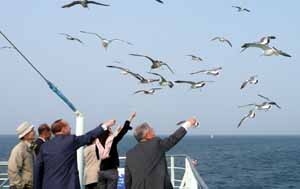 さて、フェリーにはバスごと乗り込んで中でバスから降りる。途中ソフトクリームを買い込んで上部の客室へ。ガラス窓を通した日差しが暑い。金谷→久里浜間30分ほどの旅だが、座っているのに飽きて甲板に出たら皆でカモメにエビセンをやっていた。オホーツク同様たくさんのカモメがもらおうと後を追ってくるが、放り投げたものは取らず手からとっていく。陽ざしは暖かくても吹きさらしの甲板の風は冷たく早々に船室へリタイア。行きかう船が多くなると終点間近。港に着いてからまたバスに乗り込んで横浜横須賀道路から東名高速。海老名SA、富士川SAと小休止を取りながらの帰り道、「予定より早いからラーメンでも食べようよ」と言い出した人がいて日本坂PAで最後の小休止、ここから焼津ICはすぐ、「市役所まで帰らずに途中で降ろしてもらおうよ」とうちの地区会長さんが交渉してくれて途中下車、6時半頃には家に帰り着いた。 |