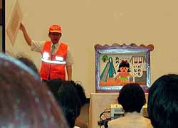 1人目は長野県岡谷市西堀地区の区長さんで、地域のお年寄りと子供達との密な交流の歴史をふまえて、お年寄りを中心にした子供達の登下校見守りのえがおまもり隊を結成した。民生児童委員も加わり任期1年で子供達を見守るとともに、学校での月1回の定例会や、学校行事への参加、空き教室を利用した子供達との交流を通して個人的に子供達と知り合うことを通して地域の人々の交流を深めてきているそうだ。またH14年から子供達の希望に沿ってお年寄りとともに学ぶラムラム広場も開催されて、すでに50回を数えているそうだ。長野県の高齢者との交流指定校に当っている学校での活動だそうだが、地域が学校を作るとともに学校が地域を作っていくのだというようなお話だった。