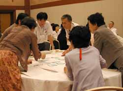 最後にグループごとにまとめの発表。それをまた教わった手法でまとめてみると、まずは主任児童委員制度についての地域へのPRの必要性、さらにはせっかくの制度を生かすために学校や児童相談所などとの情報交換や共有化の必要性、多くの地区で行われている登下校の見守りや挨拶運動で他の団体と協力したり、不審者情報メールの活用などを利用して地域の中の人間関係を密にする事、また、3世代交流の企画や父親の参加を求める声も多かった。もう1つは乳幼児健診や読み聞かせなどで多くの親子と知り合う、子育てサロンの充実、子育てマップを作るなど実際の子育て支援に関する事も上がった。また「国の子育て支援は現場から離れているので今日の意見を政府にも伝えたい」という意見も出た。
