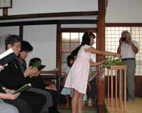 連島の叔父さんが子供達にお供えしたお菓子を配る。奉仕の人が少しいるが広いスペースを子供達は飛び回る。日比の叔母さんは超能力があるのか「そろそろ来るんじゃない」と入り口の方へ立っていくと岩手の叔父さん到着。しばらくしてまた立っていくと十勝の叔母さんと連れ立って帰ってきた。