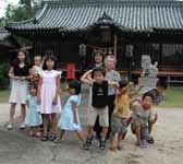 自信が無いと言いながら、車はすんなりと連島の古い町並みに到着。(右の写真は昔のままの細い道を入ってすぐの造り酒屋さん。この先に連島の家がある。)連島教会も改築をしてきれいになったが、お広前は比較的昔の面影を残している。こちらは叔父さんと叔母さん、マサキ君・セイジ君の男の子2人と長女のヒサママが小さな子を3人連れて来ていた。さらに岡山の叔父夫婦もすでに着いていた。