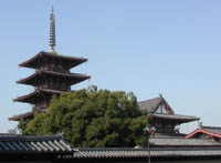 四天王寺は聖徳太子が建てたという由緒ある古刹である。伽藍配置は南から北へ向かって中門・五重塔・金堂・講堂を一直線に並べてそれを回廊が囲む形は「四天王寺式伽藍配置」 というのだそうだ。太子殿と呼ばれる夢殿のような建物がある区画があり、猫の門と虎の門がついている。