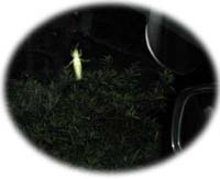 お腹も一杯になったのでここからはひたすら走る。ところが、ここで思わぬヒッチハイカーが。窓の外に止まったバッタが飛ばされもせずに、どこまでも乗っている。こうなると気になって、「無事か?」と確認しながら、ついに我が家まで来てしまった。記念写真を撮った後でキャットテールの樽の中へ。到着はpm10:50。「もしかしたら朝になるかもしれない」と言って出たので、厳重に戸締りがしてある。台所の戸を開けて、父を起こして入れてもらった。