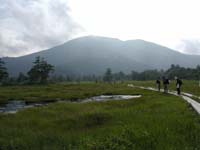 この後、TANUKIのお腹がオマツリを始めるアクシデント発生。皆さんには山の鼻まで先に行ってもらって、am9:00に追いつく。結果、山の鼻で大休止。am9:30に出発。後はひたすら登り道をテクテクと歩いてam10:13あたりに前後して鳩待峠に到着。