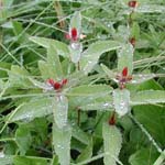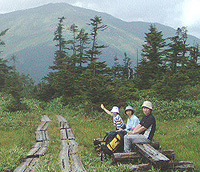 募金箱がpm0:10鳩待峠スタート。川上川沿いの道を「帰りは登りたくないねぇ」と言いながら、下って行く。あまり見晴らしは無い熊笹の茂る道だが、「この葉っぱは、この花は」とスタジオAさんの解説つき、キノコを見つけたり、ブルーベリーを見つけたり、風さんは張り切ってシャッターを押し続け、ままねこさんやチロちゃんも負けじと続く。オオカメノキ・ガマズミなどの実が赤くなり、マユミの実もピンクに色づき始め、アザミやタムラソウ、マルバダケブキなどの花もあり、1時間で着くはずの道を1時間40分かけて山の鼻のビジターセンターに到着。