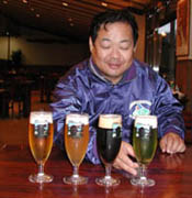 地ビールと言うが元々はワイン蔵で、道路から道を下って入って行くとまずワイナリーショップがある。ビールの方はレストランの中に製造ラインが組み込まれて見えるようになっている。いささか時間が早かったので先客は1組。
