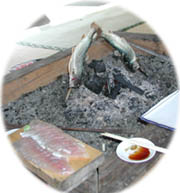 この釣堀は入場料は無いが魚の目方と料理の手数料を取られる。ここはTANUKIの奢りなのでこちらは左団扇。いや、団扇で火をおこさなければ。