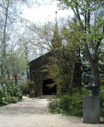入った時にはちょうど大学のゼミか何かの若い人の団体が、碌山の作品が展示されている教会風の建物で講師の解説を聞いていた。