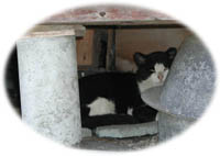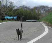 TANUKIが何とか大きな岩魚を2匹釣り上げ、お刺身と塩焼きにしてもらう。「もう1匹塩焼きが…」と言うと「引っかけで捕りな」と親父さんが言ってくれる。餌ではなく釣り針に魚を引っかけて捕る訳だ。無事これでもう1匹確保。囲炉裏の前に座り込む。親父さんが魚をさばいている下には、白黒の大きなネコがアラを食べにやってきた。「家の猫じゃないんだけどね」と奥さんは言うが、猫の方は「私のテリトリー」とばかりに物怖じもせず食事をし、日向でひとしきり休んだ後は縁の下で寛いでいた。
